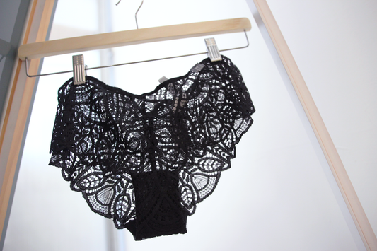 黑色蕾絲搭配可愛花花印花。(本人非常可愛!)