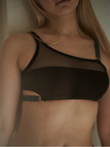 不對稱設計與透明感的上衣完美搭配!透膚和腋下開口設計,展性個性女性氣息,也不會過於運動風格。