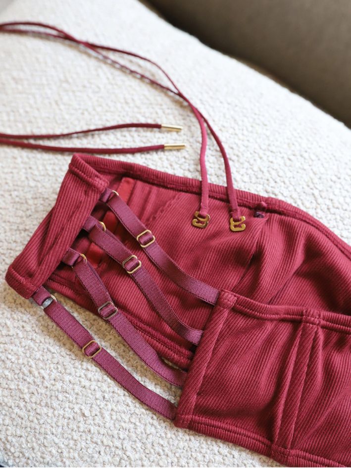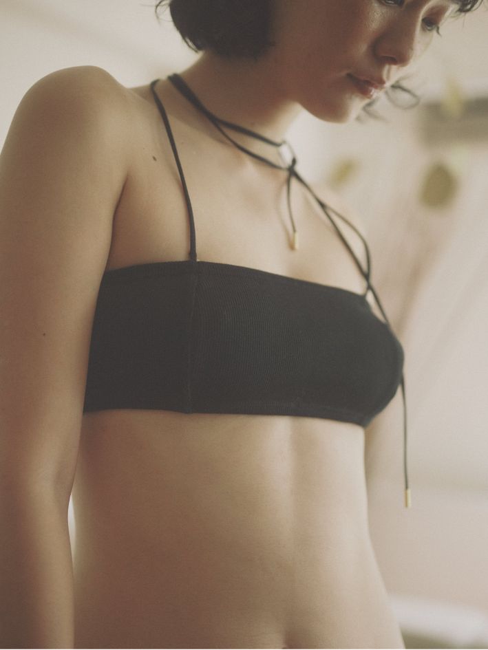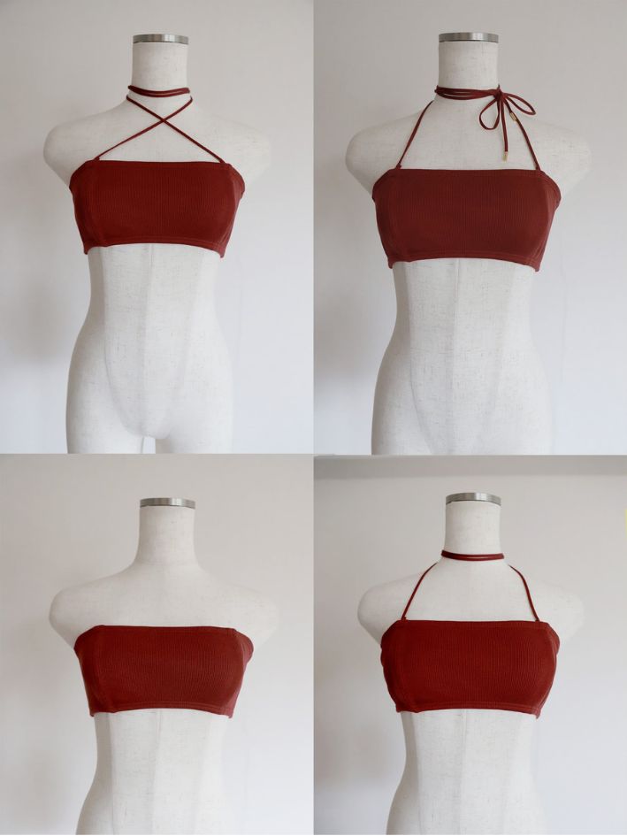 可拆卸肩帶提供多種穿法:可繞頸、自然垂下,或在頸部創造不同造型。即使不使用肩帶,側邊內建支撐骨架也能提供穩定的支撐效果。背部設計別具巧思,可作為穿搭的亮點,輕鬆提升整體造型感。同時,尺寸可用調整扣進行調整,實現專屬的貼合感。