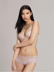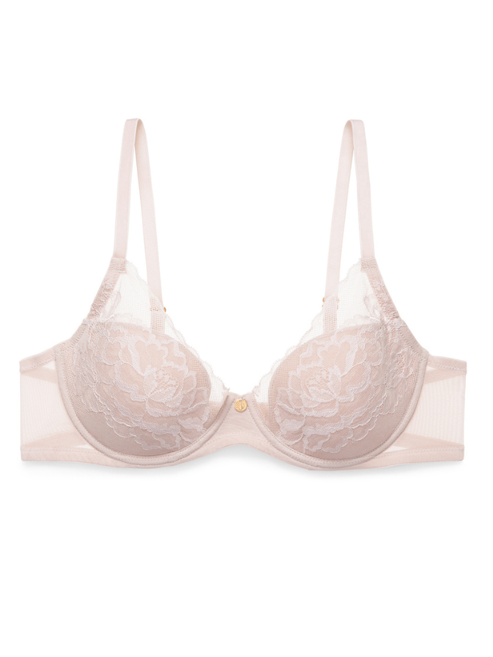 Innovative molded, floral lace overlays smooth cups for a seamless edge that disappears completely under clothes.
