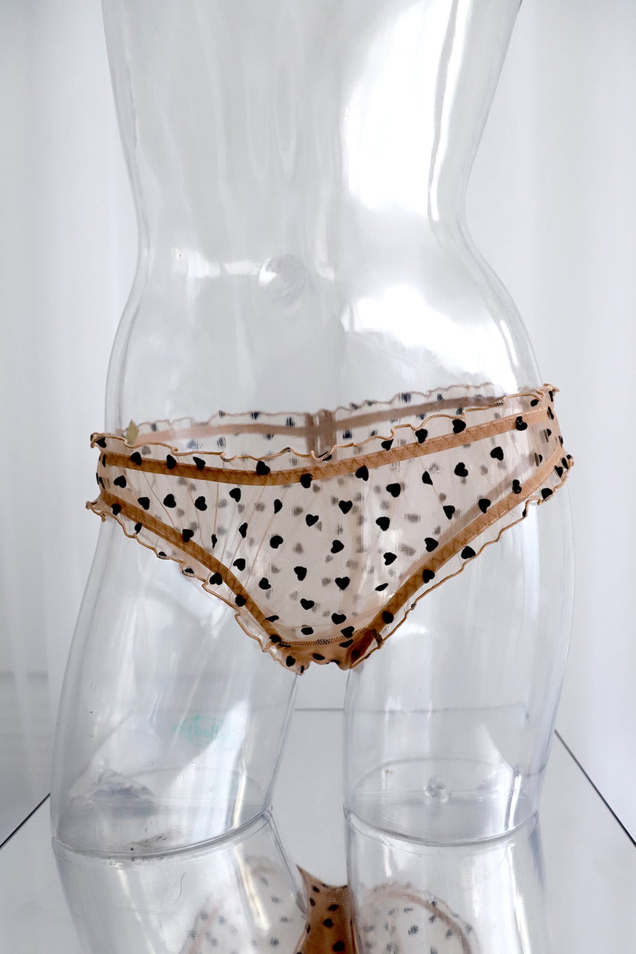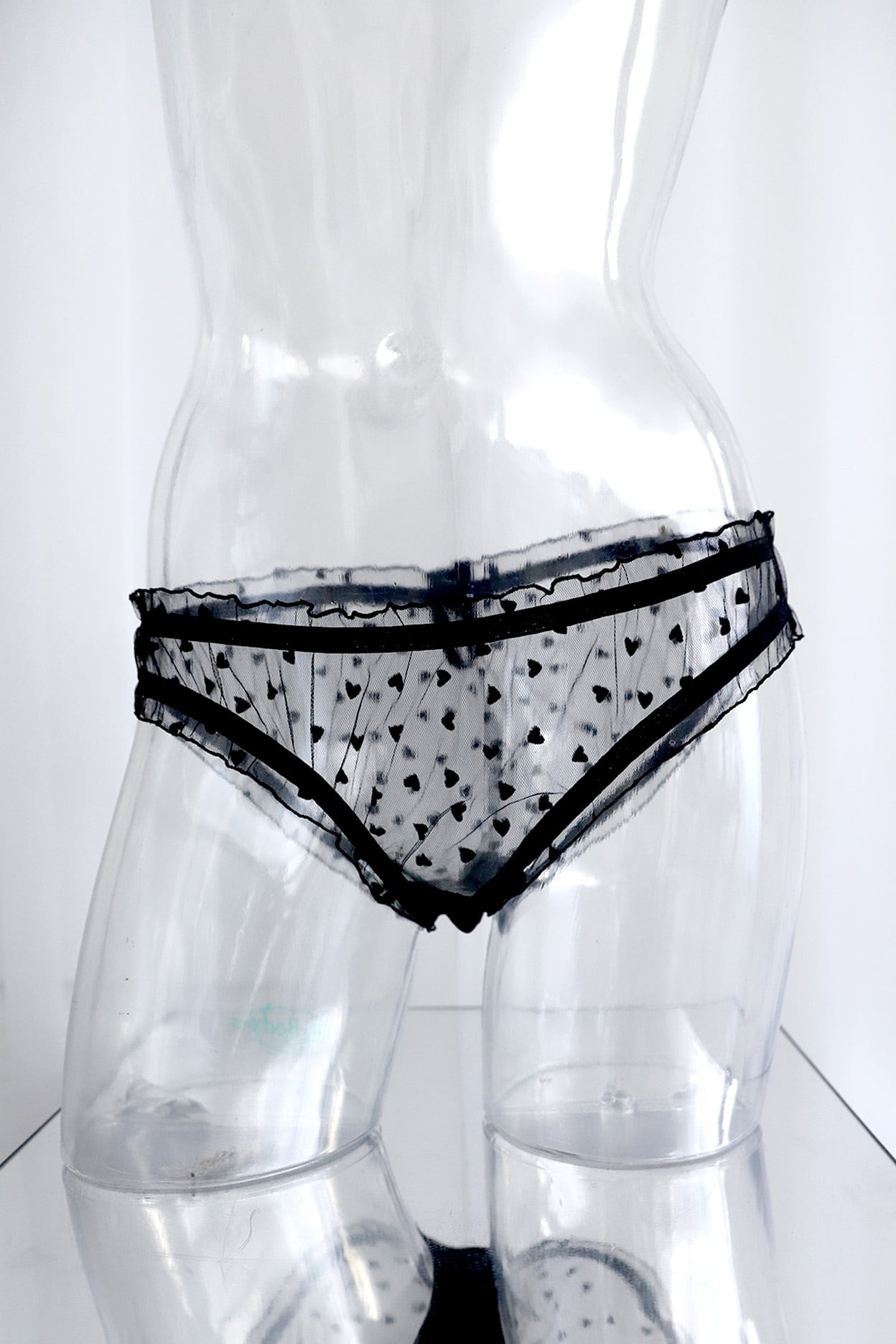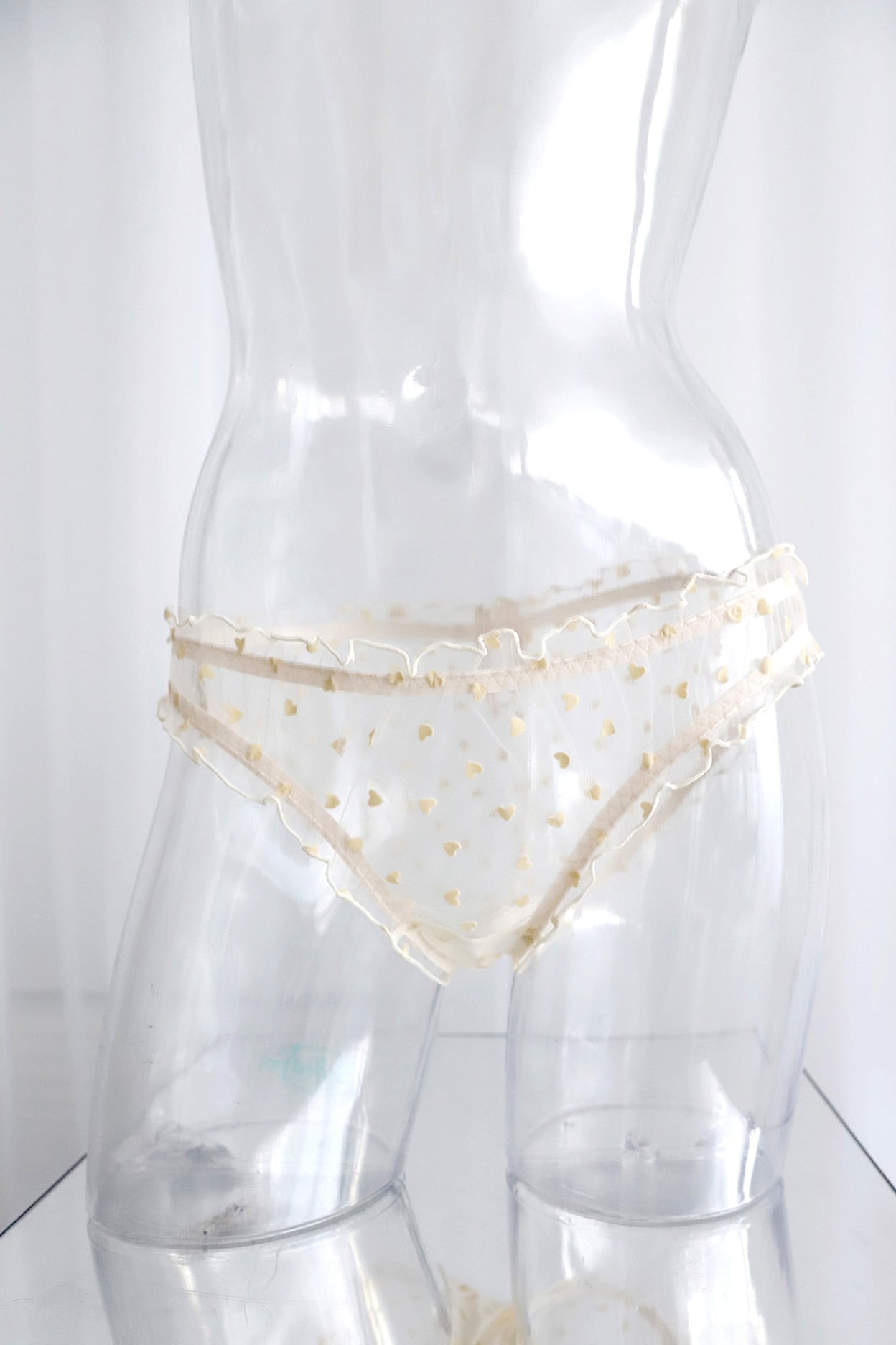 這款透視材質的內褲,印有可愛的心形浮凸圖案,極具吸引力。