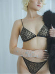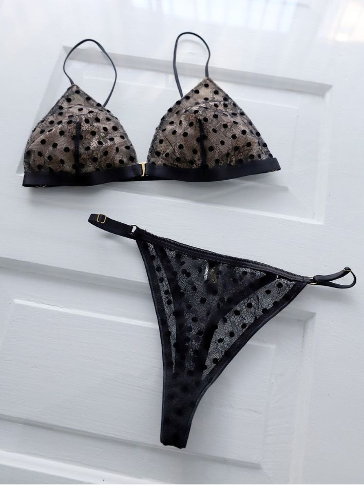 這款精緻的蕾絲內衣以蕾絲圖案和絨毛波點裝飾,展現獨特魅力。乍看之下,蕾絲非常細膩,但由於採用日本製工藝,質地堅韌且耐用。