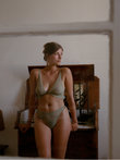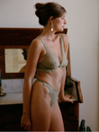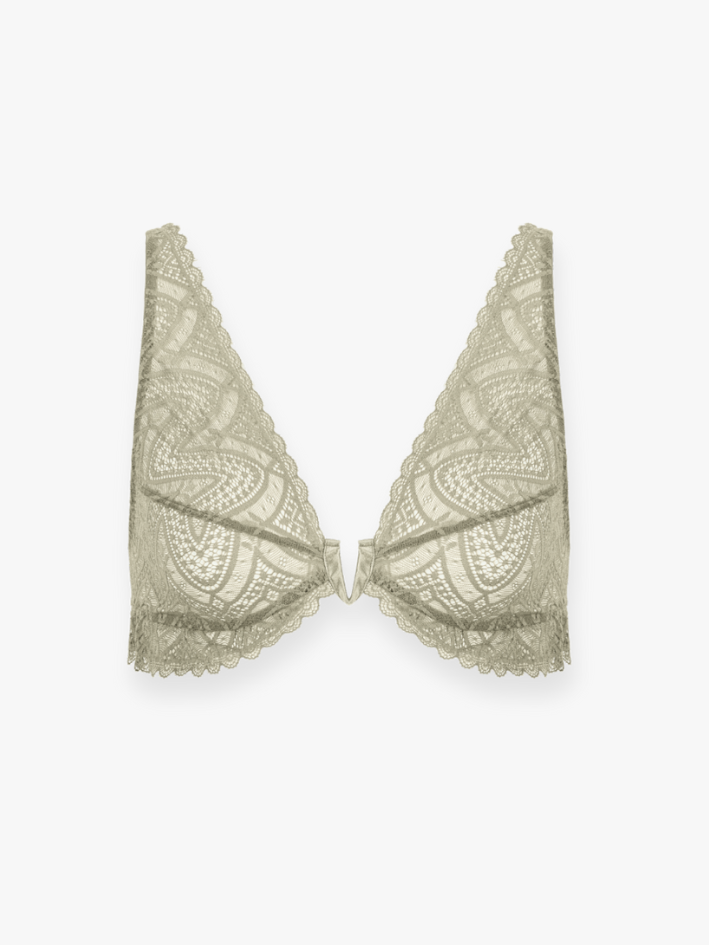 小亮點:罩杯中間以 V 字形挖空設計相連,展現優雅性感的女人味。提供秋意十足的卡其綠與深棕色兩款,推薦搭配同系列的 Oli 丁字褲,呼應 V 字細節設計。