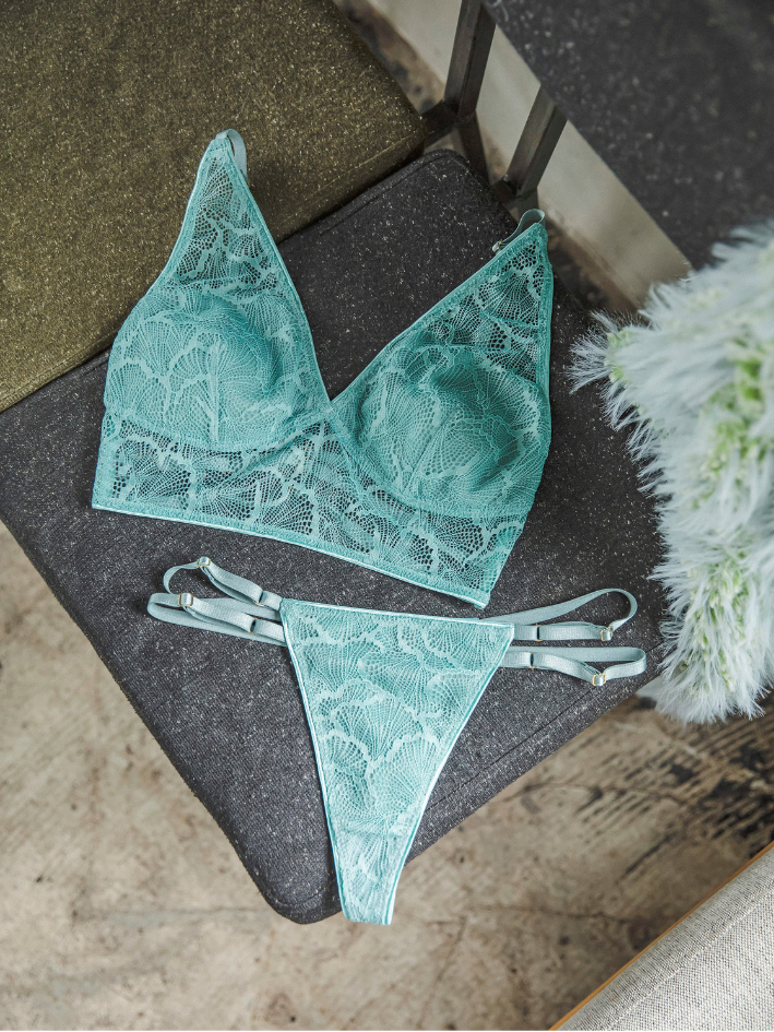 蕾絲有彈性,緊貼肌膚,圖案像是一片片精緻的葉子。