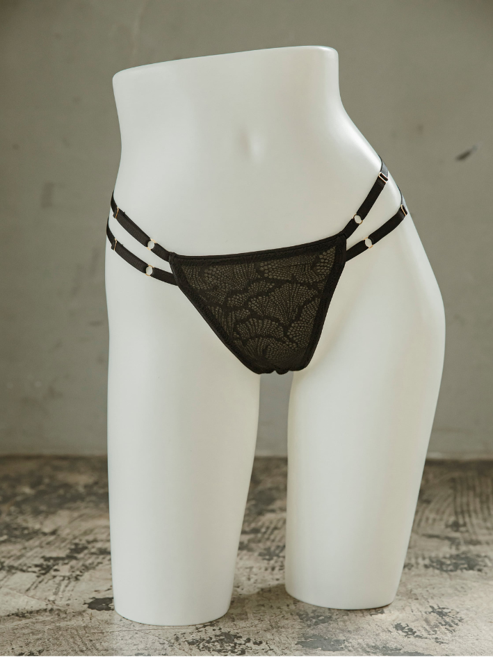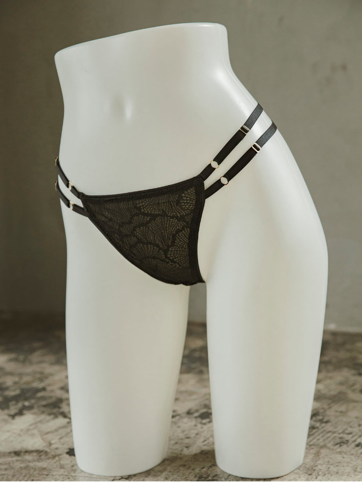 全蕾絲奢華製作,設計精美的丁字褲,兩側一樣是Gemini Tale標誌性可調整多織帶設計。
