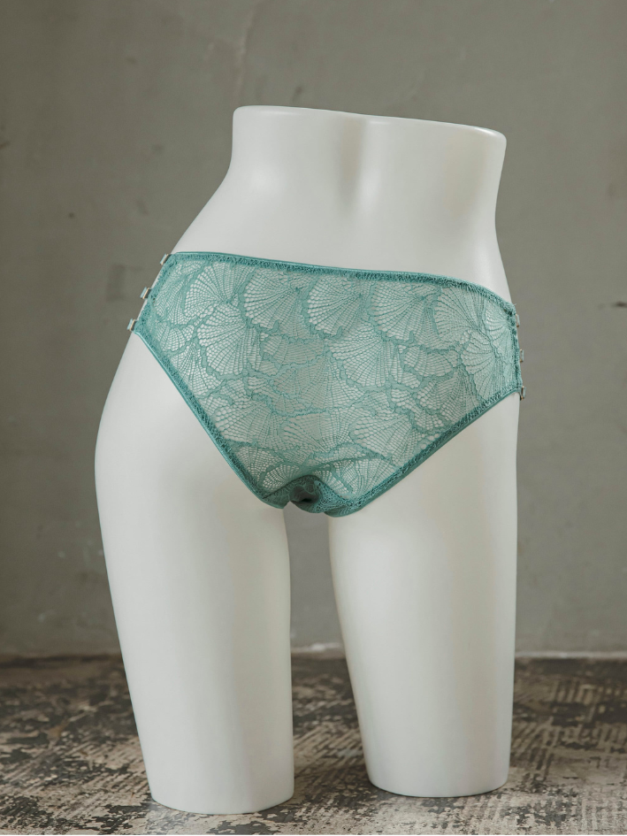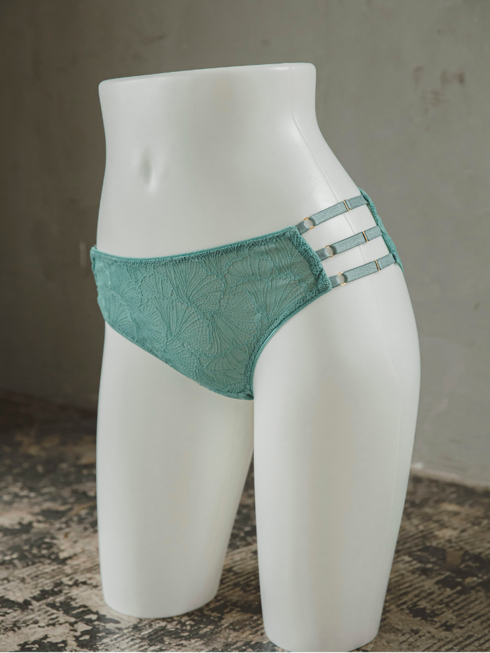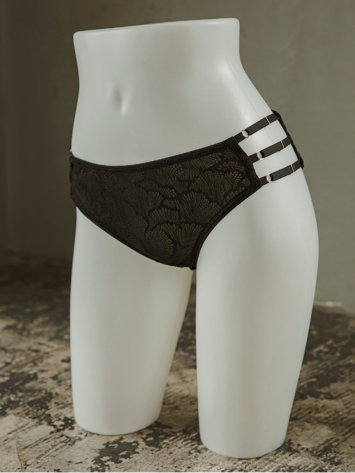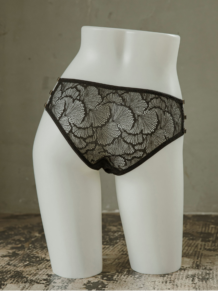 全蕾絲奢華製作,設計精美的低腰內褲,兩側一樣是Gemini Tale標誌性多織帶設計。